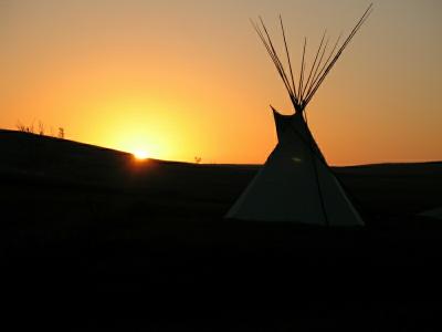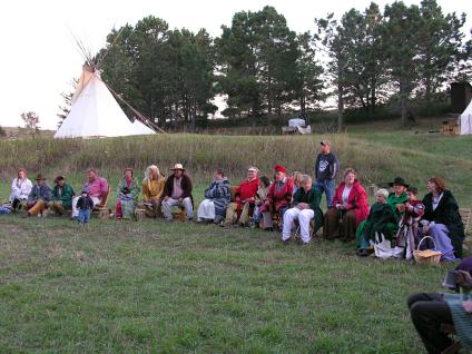 Everyone waits for the camp meeting to start.