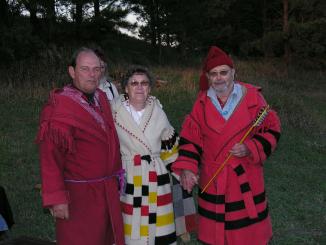 George & Alice Bartell, landowners/members receive the traditional Sweetwater arrow from Frank Zahn, member.