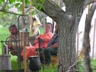 The blacksmith's forge made a nice backdrop while Tyler and his guest appear to be deep into a challenge.
